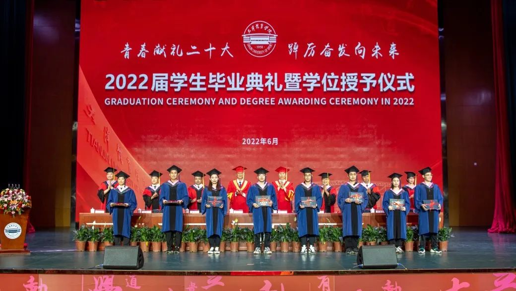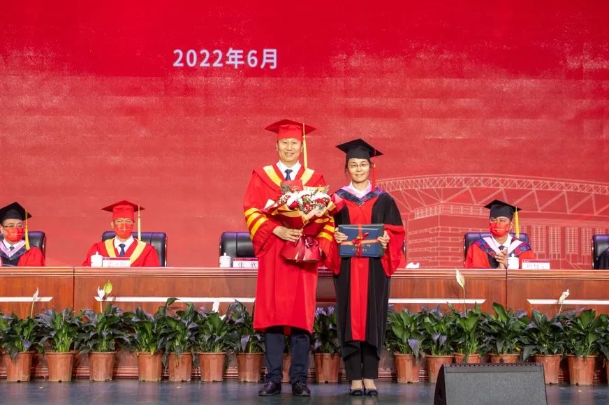 畢業(yè)典禮在升國(guó)旗儀式中拉開(kāi)帷幕。宋愛(ài)軍宣讀天津體育學(xué)院2022屆優(yōu)秀畢業(yè)生表彰決定。教務(wù)處處長(zhǎng)金宗強(qiáng)宣讀天津體育學(xué)院2022屆本科畢業(yè)生學(xué)位授予決定。科研與研究生處處長(zhǎng)徐金陸宣讀天津體育學(xué)院2022屆碩士、博士畢業(yè)生學(xué)位授予決定。主席臺(tái)就坐領(lǐng)導(dǎo)向優(yōu)秀畢業(yè)生代表頒發(fā)榮譽(yù)證書(shū)和紀(jì)念品,向本科、碩士畢業(yè)生代表頒發(fā)了學(xué)位證書(shū)和畢業(yè)證書(shū)。張欣為到場(chǎng)的3名博士畢業(yè)生代表頒發(fā)了學(xué)位證書(shū)和畢業(yè)證書(shū)。