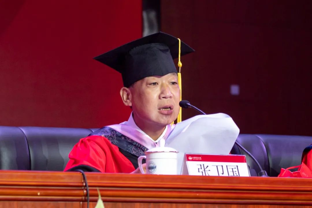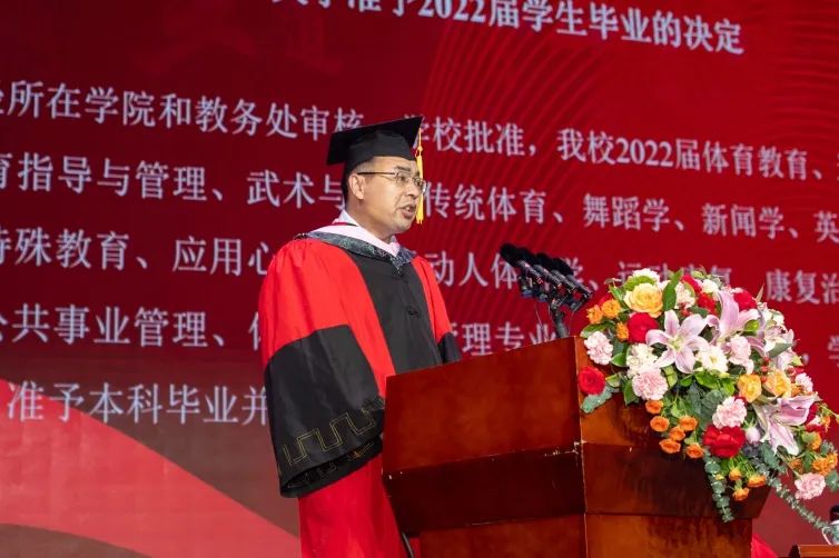 教師代表劉洪俊教授發(fā)言,表達(dá)了對(duì)2022屆畢業(yè)生的真誠(chéng)祝賀與祝福,鼓勵(lì)同學(xué)們做讓自己尊重的人、懂得感恩的人、勇于奮斗的人,做勇敢走在時(shí)代前列的奮進(jìn)者、開(kāi)拓者、奉獻(xiàn)者。