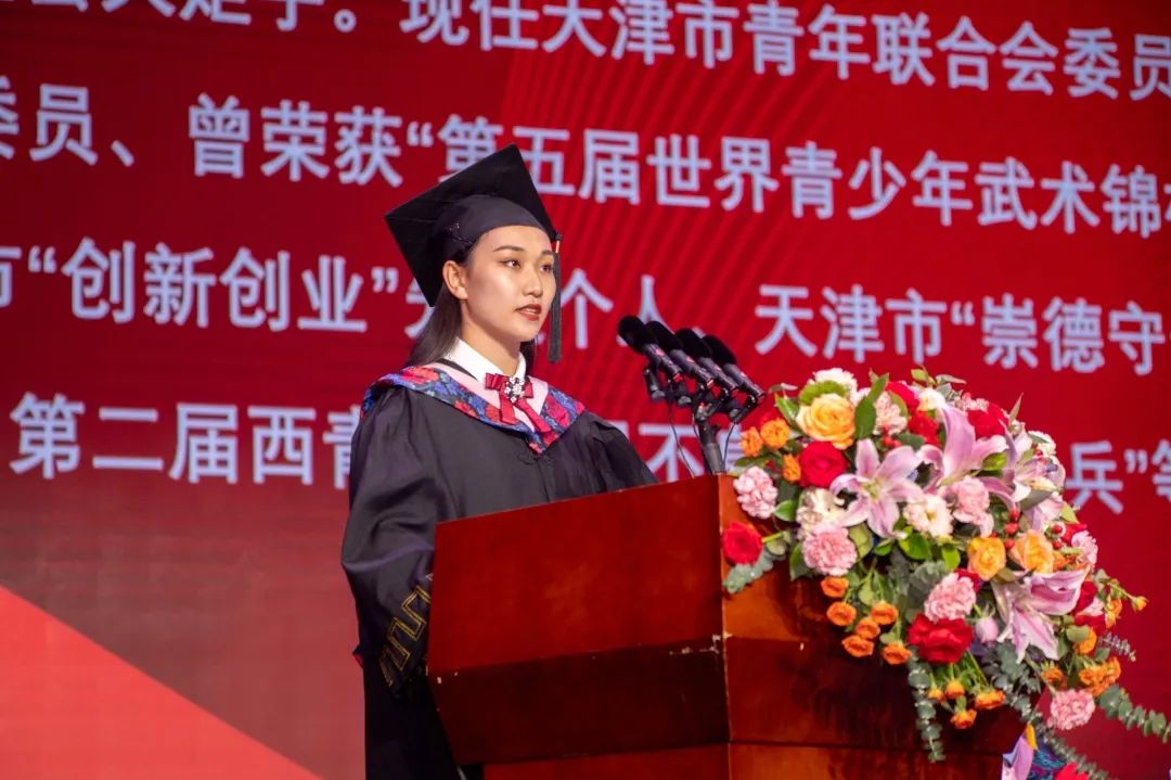 本科畢業(yè)生代表李雪娜發(fā)言,號(hào)召全體畢業(yè)生發(fā)揚(yáng)天體精神,把理想播種在廣闊的時(shí)代沃土,奮力書(shū)寫(xiě)賡續(xù)百年偉業(yè)的青春華章。
