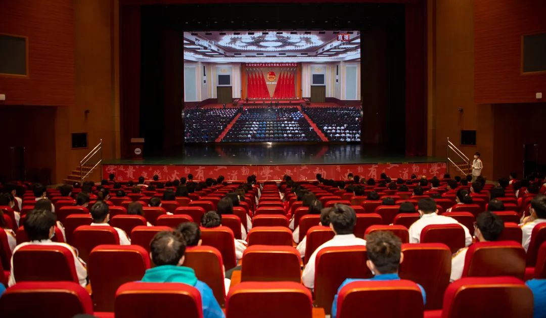 我校師生代表在大學(xué)生活動(dòng)中心禮堂集中觀看慶祝大會(huì)。習(xí)近平總書記重要講話在我校師生中引發(fā)熱烈反響。