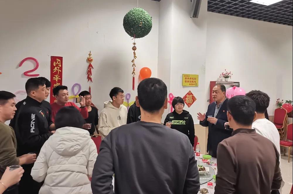 師生共進年夜飯。吉承恕致辭,他代表學校向全體留校學生及家人們送去真摯的新年祝福,祝愿大家虎虎生威、如虎添翼、再創(chuàng)佳績。
