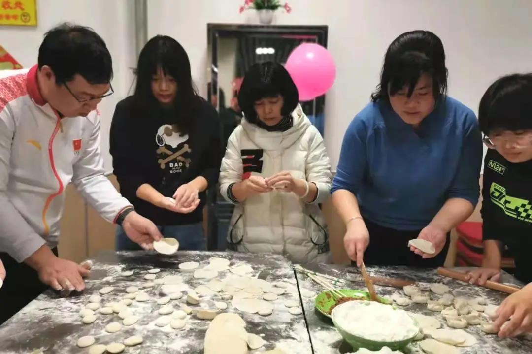 2022年1月31日(農(nóng)歷除夕),學校食堂二樓清真餐廳喜氣洋洋。黨委副書記、院長吉承恕,黨委學工部部長張鋒、運動訓練科學學院黨委副書記郝建華、社會體育與健康科學學院黨委副書記楊玉、體育教育與教育科學學院副院長戚克敏,相關學院輔導員、學工干部、院辦干部和全體留校學生一起包餃子、共進年夜飯,歡度除夕。
