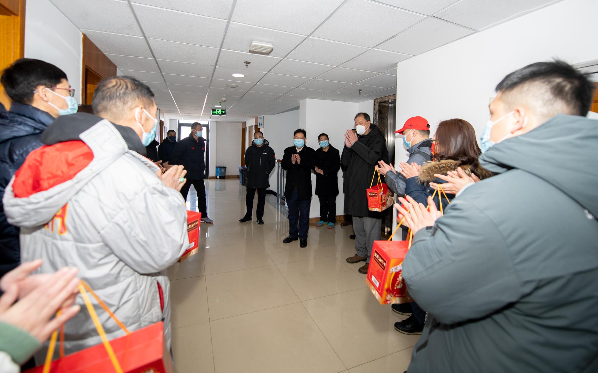 2022年1月31日(農(nóng)歷除夕)上午,校領(lǐng)導(dǎo)王歡、吉承恕、張立順、張欣、宋愛軍、張衛(wèi)國一行,先后來到團泊校區(qū)的行政值班室、能源站、車隊值班室、學(xué)生宿舍樓、圖書館、綜合服務(wù)樓,以及河西校區(qū)的保衛(wèi)室、樓宇物業(yè)室、變電站等地,專程看望慰問在春節(jié)假期仍堅守工作崗位的學(xué)工、網(wǎng)信、后勤、保衛(wèi)、基建等教職員工,向他們致以誠摯的問候和虎年新春祝福,并送上春節(jié)慰問品。