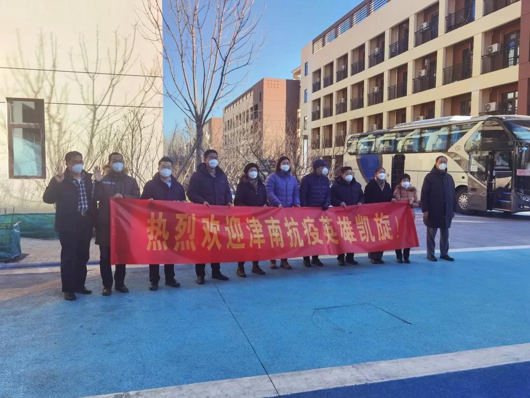 1月29日下午,津薊高速繁忙而有序,一輛輛客車依次駛過,車身上懸掛的歡迎英雄凱旋的橫幅迎風(fēng)招展,全市2000名支援津南抗疫的機關(guān)事業(yè)單位干部結(jié)束在寶坻的集中隔離,由各單位接回。在寶坻集中隔離點門口,我校黨委副書記、院長吉承恕和有關(guān)部門、單位負責(zé)同志組成的迎接團隊,熱烈歡迎圓滿完成津南抗疫任務(wù)的我校20名黨員干部教師凱旋,學(xué)校安排兩輛專車統(tǒng)一轉(zhuǎn)運,一一護送到家。