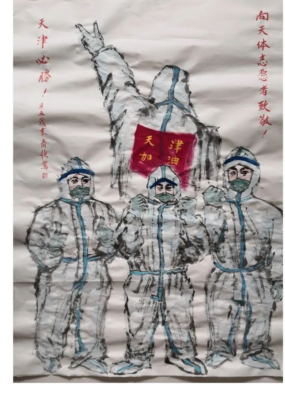 離退休同志在做好自身防護的同時,積極創作書畫、詩詞作品,表達對抗疫前線工作者無私奉獻的敬意,對天津人民團結互助樂觀精神的贊揚。