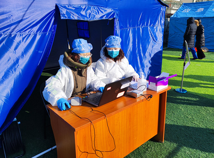 尹延蘭,中共黨員,黨委辦公室干部,參加東麗區金鐘街道瑞和里社區核酸篩查志愿服務,參與完成場地布置、維護檢測等候區秩序、綠色通道引導,輔助醫護人員拆封采樣試劑等。