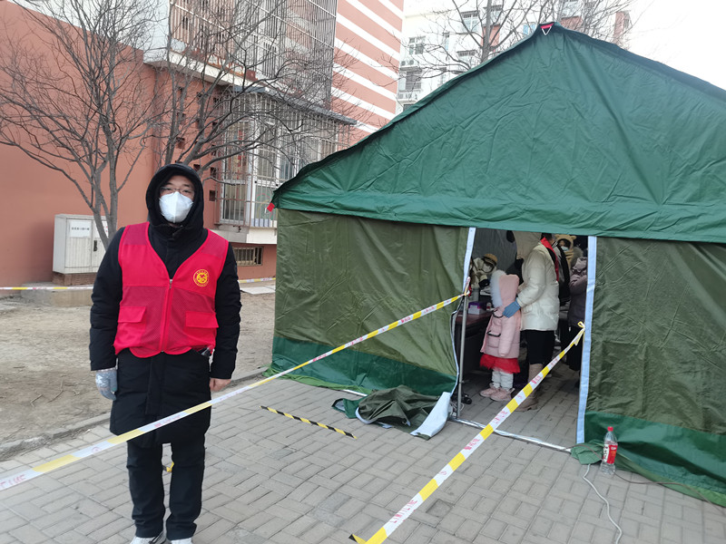 周宏宇,中共黨員,輔導(dǎo)員,在西青區(qū)中北鎮(zhèn)碧水家園社區(qū)負(fù)責(zé)核酸篩查現(xiàn)場秩序維護(hù)和消殺等工作。