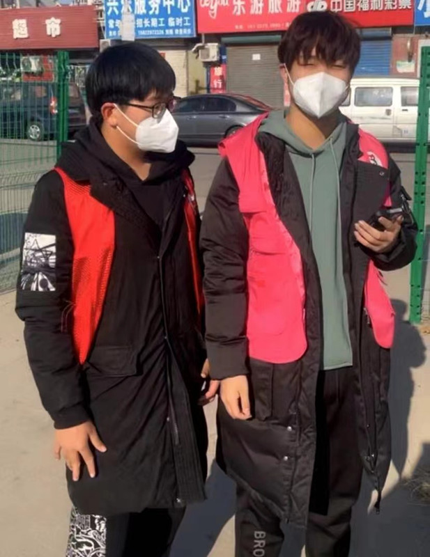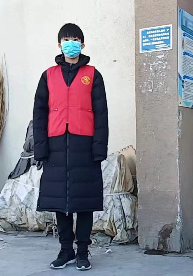 郝霖,2019級乒乓球專項學生,在西青區大寺鎮誼龍花園負責核酸檢測現場秩序維護。