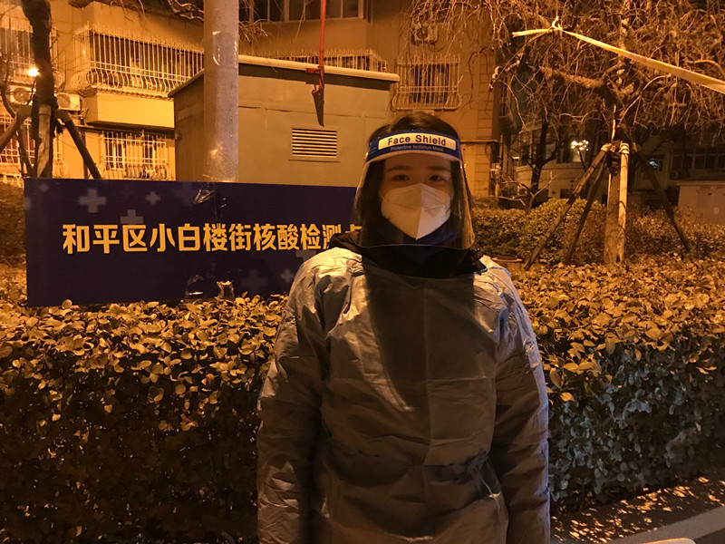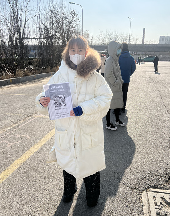 賴雅琳,文化與藝術(shù)教研室教師,在和平區(qū)南營門街道香榭里社區(qū)負責第三輪全員核酸篩查登門入戶信息統(tǒng)計,以及檢測現(xiàn)場人員引導(dǎo)、秩序維護工作。