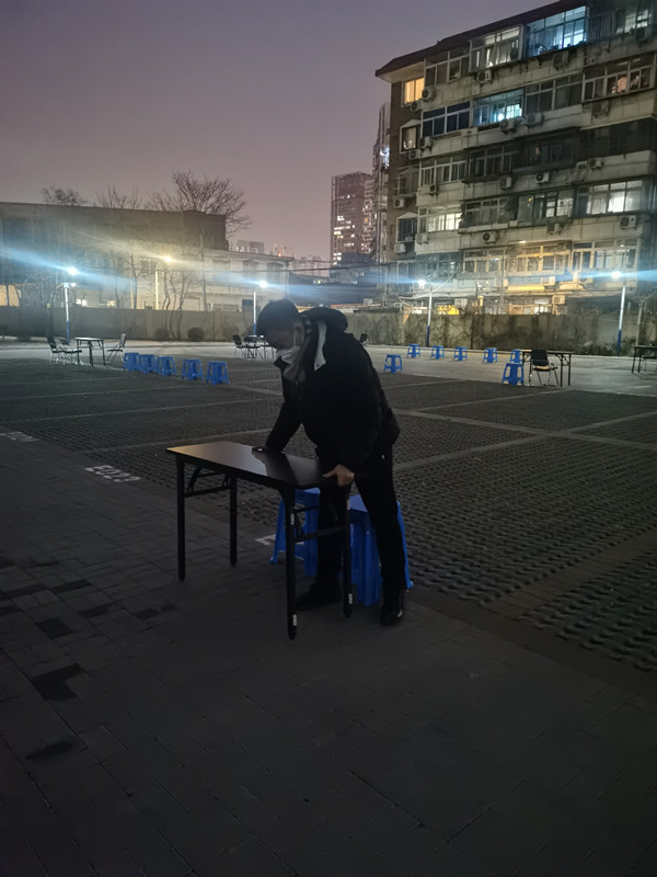 邢進,舞蹈教研室教師,在河?xùn)|區(qū)春華街道匯和家園社區(qū)協(xié)助開展第三輪全員核酸篩查準備工作。