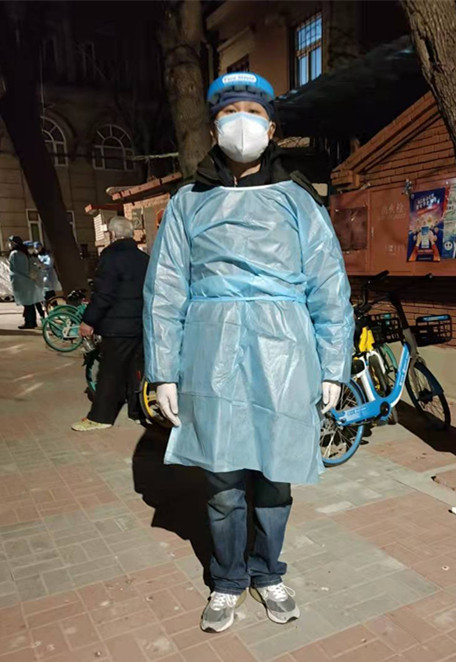 國輝,文化與藝術(shù)教研室教師,在西青區(qū)李七莊街道新都莊園社區(qū)協(xié)助開展第三輪全員核酸篩查登門入戶信息統(tǒng)計工作。