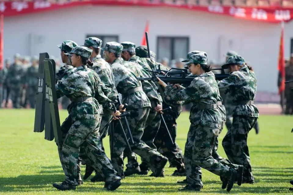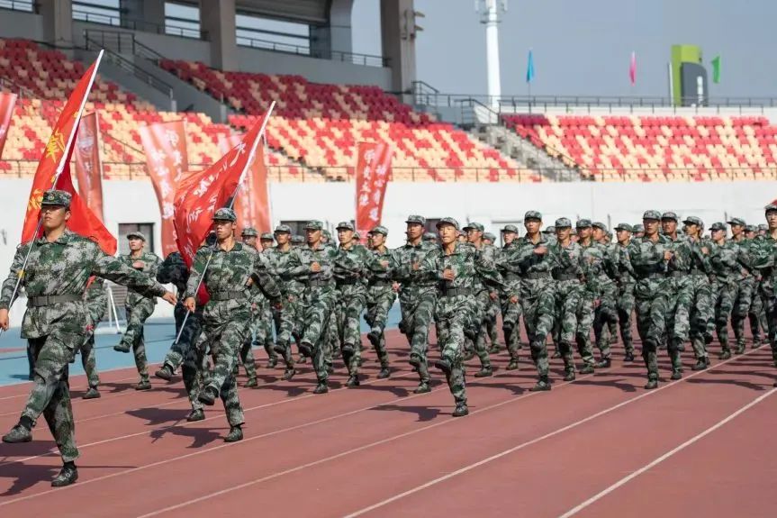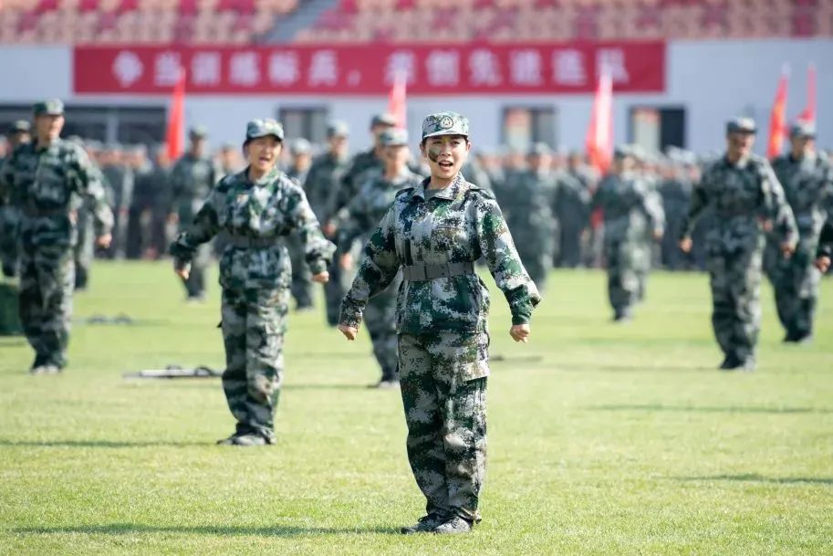 軍訓匯報大會在全體新生齊唱《做習主席的好戰士》的歌聲中圓滿落幕。