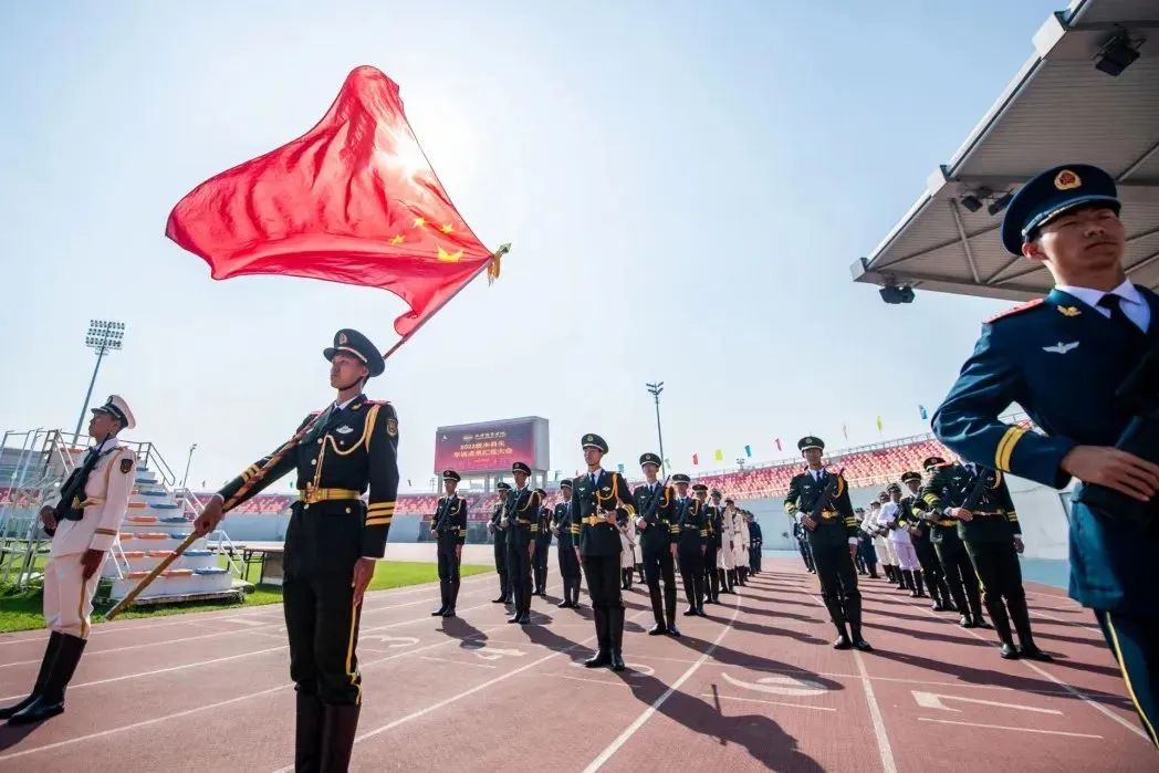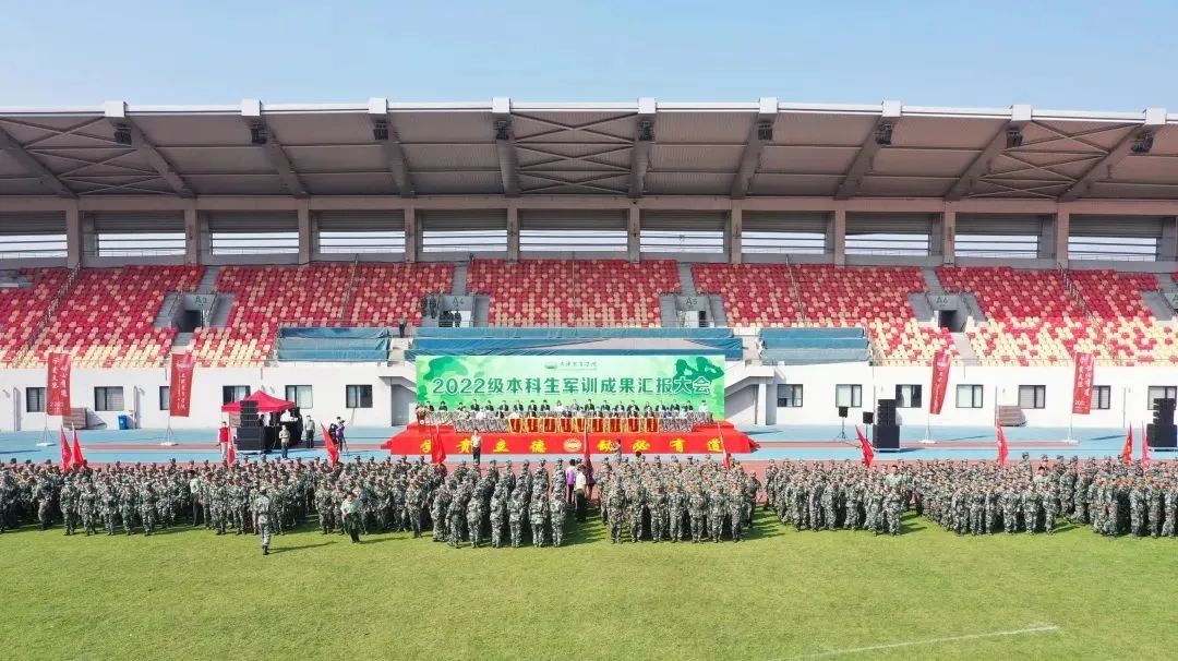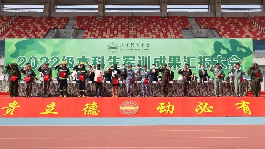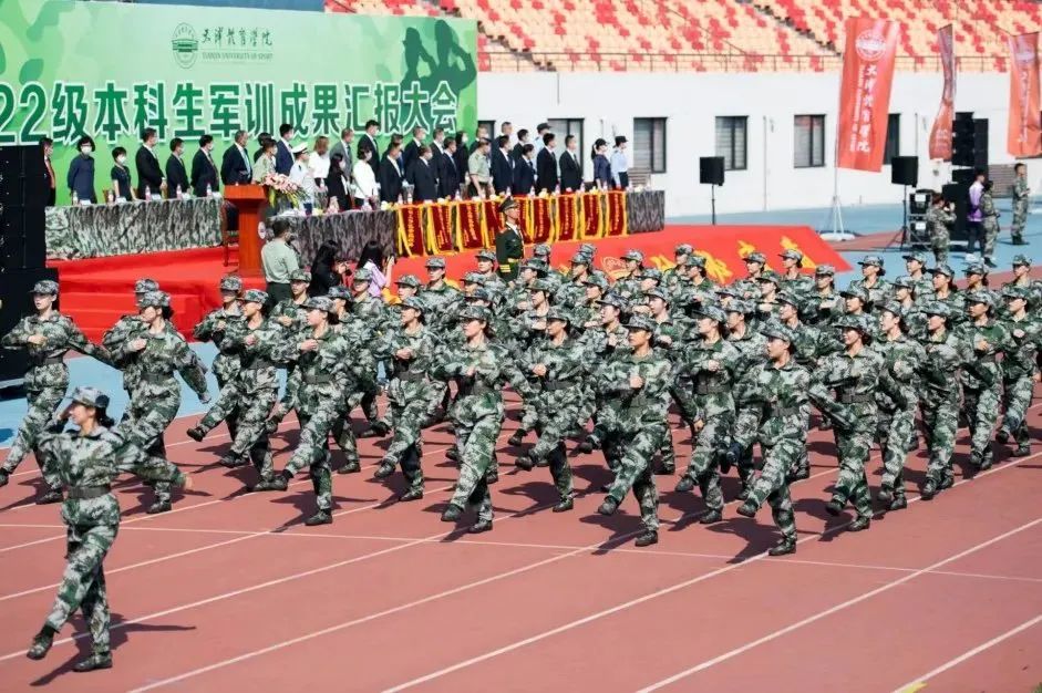 9月28日上午,天津體育學院2022級本科生軍訓成果匯報大會在田徑場舉行。天津警備區學生軍訓工作辦公室主任辛維剛大校,天津體育學院黨委書記、軍訓工作領導小組組長張立順,天津體育學院黨委副書記、院長、軍訓工作領導小組組長張欣,天津體育學院黨委副書記、軍訓工作領導小組副組長宋愛軍,天津體育學院副院長、軍訓工作領導小組副組長張衛國,天津市教委體美勞處齊雙一,天津市公安局靜海分局華康派出所副所長王瑩,天津體育學院優秀校友、天津市消防救援總隊靜海支隊朱楓出席,學校辦公室、黨委組織部、黨委宣傳部、黨委統戰部、黨委安全工作部、教務處、后勤處、人民武裝部、團委主要負責同志,各二級教學單位黨政領導,全體新生、輔導員、墨盾書院承訓教官、軍訓工作人員參加。大會由宋愛軍主持。