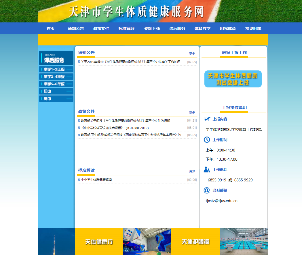 今年初,在市教委和學校支持下,運動健康學院體質檢測中心、網絡安全和信息化辦公室聯合建成服務于全市中小學、高校的“天津市學生體質健康服務網”平臺。該平臺目前已實現對全市學生體質健康測試數據、視力測試數據、學校體育年度工作報告等信息的采集、審核、分析功能。我校利用該平臺完成了“2022年天津市民心工程”——全市中小學生體質測試數據采集分析工作,覆蓋1421所學校、130萬名學生,組織編撰了《天津市中小學生體質健康監測報告》,并提交市教委。