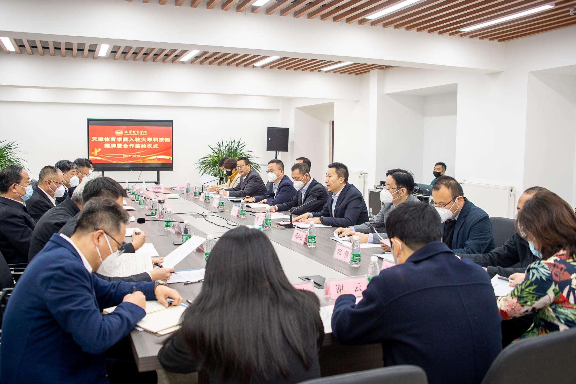 期間,天津體育學院與羽彤智能科技有限公司、天津中醫藥大學科技園發展有限公司簽署合作協議。天津體育學院運動保健功效產品研發項目負責人、大學科技園入駐企業代表、天津中醫藥大學資產經營公司負責人分別就深入開展政產學研合作,發揮創新資源集聚功能,推動科技成果轉化落地等內容作了交流發言。