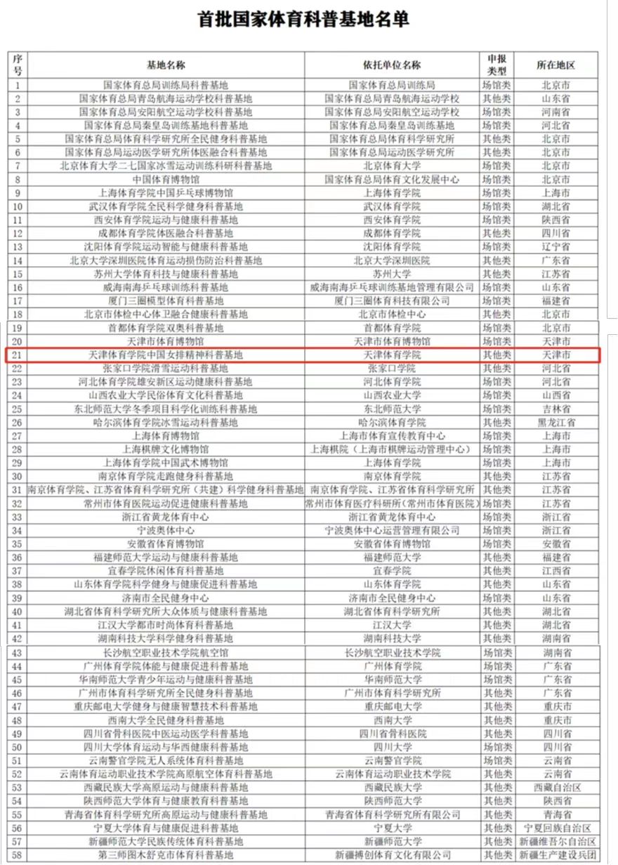 近日,國家體育總局和科學技術部公布首批國家體育科普基地名單。經過組織推薦、專家評審、公示命名等環節,天津體育學院中國女排精神科普基地獲批首批國家體育科普基地。