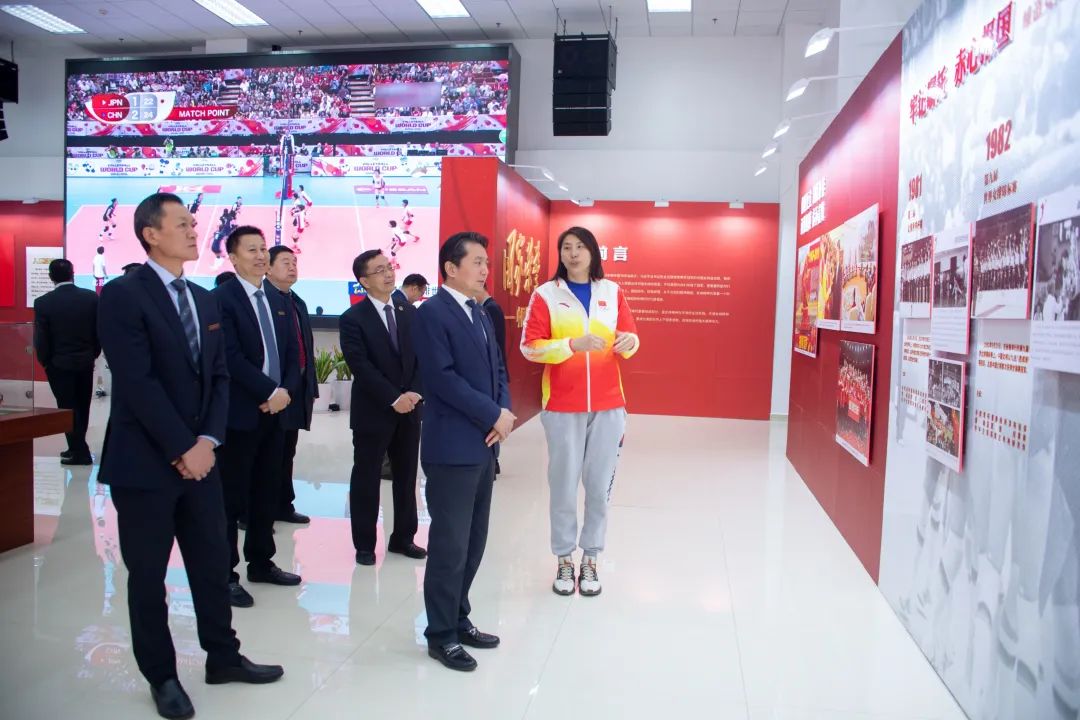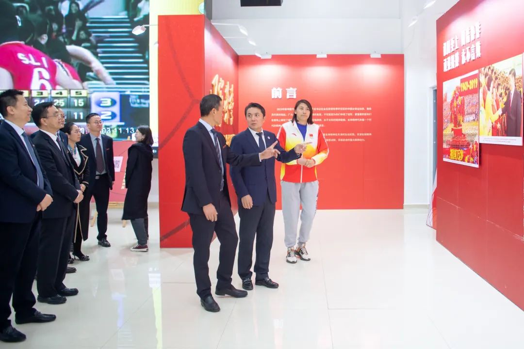 簽約儀式結束后,在張立順、張欣陪同下,顏華一行參觀了位于中國排球學院的“國家榮譽——中國女排精神展”,回顧女排輝煌歷史戰績,感悟新時代女排精神內涵。
