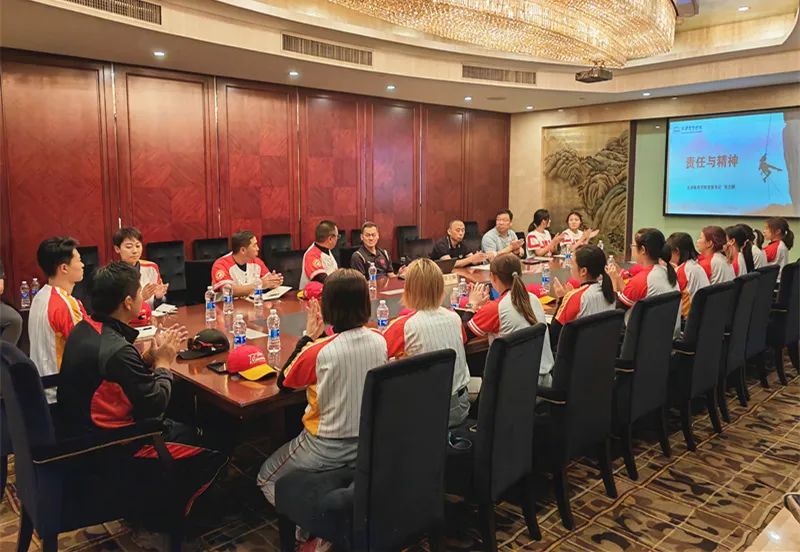 隨后,張立順在中國國家女子棒球隊(duì)駐地為全體教練員、運(yùn)動(dòng)員講授思政課,進(jìn)行愛國主義教育。張立順指出,中國國家女子棒球隊(duì)作為一支新成立的國字號(hào)運(yùn)動(dòng)隊(duì),要秉持“思想建隊(duì)、作風(fēng)強(qiáng)隊(duì)”的理念,扎實(shí)做好各項(xiàng)備戰(zhàn)訓(xùn)練工作,積極為國爭(zhēng)光。他強(qiáng)調(diào),一是要培育好以愛國主義為核心的“向心力”,全體隊(duì)員要心懷祖國至上的愛國主義情懷,從“女排精神”中汲取強(qiáng)大精神力量,把愛國主義融入運(yùn)動(dòng)員的血脈,不斷堅(jiān)定為國奮戰(zhàn)的理想信念。二是要不斷提升全體隊(duì)員的“凝聚力”,大力營造“一條心、一盤棋、一股勁”的濃厚氛圍,把隊(duì)伍建設(shè)成為堅(jiān)強(qiáng)的戰(zhàn)斗集體。三是要持續(xù)提高隊(duì)伍“戰(zhàn)斗力”,要堅(jiān)持用習(xí)近平新時(shí)代中國特色社會(huì)主義思想武裝頭腦,堅(jiān)持問題導(dǎo)向和系統(tǒng)觀念,不斷強(qiáng)化隊(duì)員體能訓(xùn)練、特色化技戰(zhàn)術(shù)訓(xùn)練,通過經(jīng)常性開展訓(xùn)練“復(fù)盤”,及時(shí)總結(jié)訓(xùn)練經(jīng)驗(yàn),切實(shí)提升隊(duì)伍備戰(zhàn)訓(xùn)練成效。最后,張立順寄語全體隊(duì)員,要堅(jiān)持自信自立,在國際舞臺(tái)展示出中國運(yùn)動(dòng)員的卓越風(fēng)采。