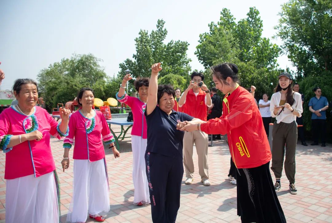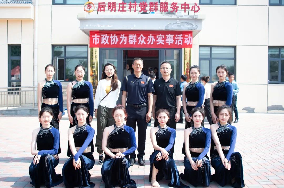 為高質(zhì)量開展好學(xué)習(xí)貫徹習(xí)近平新時(shí)代中國特色社會(huì)主義思想主題教育,助力鄉(xiāng)鎮(zhèn)社區(qū)居民養(yǎng)成科學(xué)合理的體育運(yùn)動(dòng)習(xí)慣,全面提高人民群眾身體素質(zhì),5月15日,市政協(xié)委員、校黨委書記張立順帶隊(duì)赴靜海區(qū)大豐堆鎮(zhèn)后明莊村,參加由市政協(xié)組織的“為群眾辦實(shí)事”活動(dòng)。學(xué)校辦公室、黨委宣傳部有關(guān)負(fù)責(zé)同志和傳媒與藝術(shù)學(xué)院部分師生一同參加活動(dòng)。