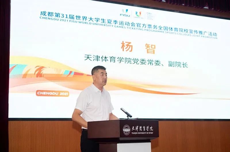 楊智在致辭中指出,世界大學生運動會不僅是全球青年的體育盛會,更是文化交流的重要平臺。我校多名師生將參加此次成都大運會,在賽場內外貢獻天體力量。此次宣傳推廣活動的舉行,提供了全面展示青年學子精神風貌、全面展示體育院校辦學成效的重要窗口,也是弘揚體育精神、共赴青春之約的生動實踐!天津體育學院愿與成都大運會執委會,及全國體育院校攜手,共同傳播好第31屆世界大學生夏季運動會的中國故事,向世界展示新時代中國大學生的體育精神和青春風采,進一步鼓舞、鼓勵更多的高校學子融入體育強國建設,合力呈現具有中國特色、彰顯時代風采的體育盛會!