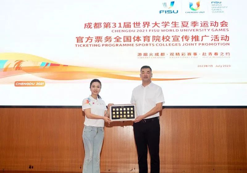 7月6日,成都第31屆世界大學生夏季運動會全國體育院校宣傳推廣活動在我校舉行。活動以“游煙火成都 觀精彩賽事 赴青春之約”為主題,旨在講好成都大運故事,傳播成都大運聲音。校黨委常委、副院長楊智和成都大運會執委會票務中心主任陳婷婷出席并互贈禮物,跳水奧運冠軍、我校校友汪皓,原中國女排運動員、女排奧運季軍、亞運會冠軍、我校教師李娟,以及200余名師生代表參加了活動。