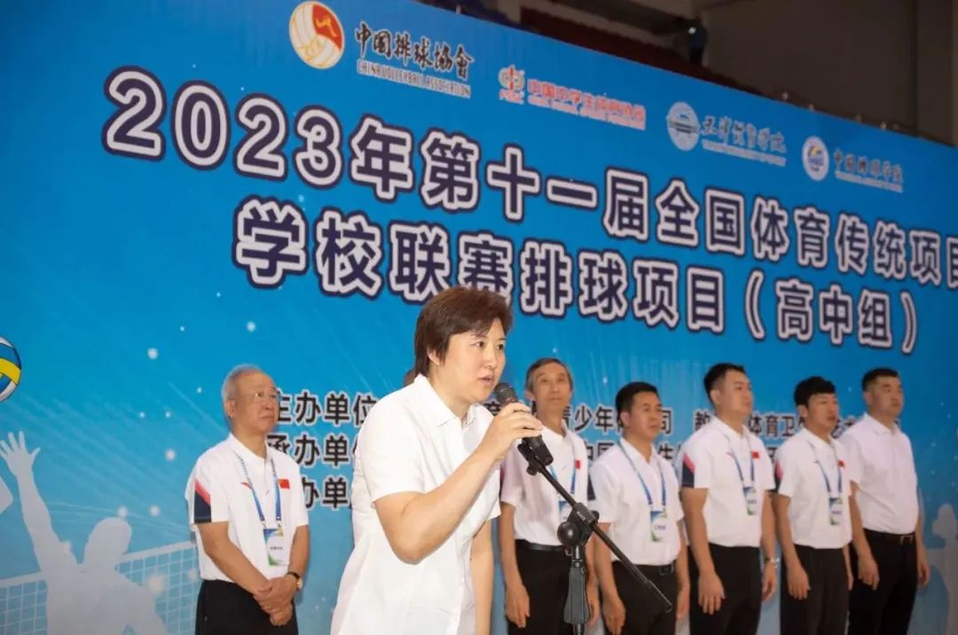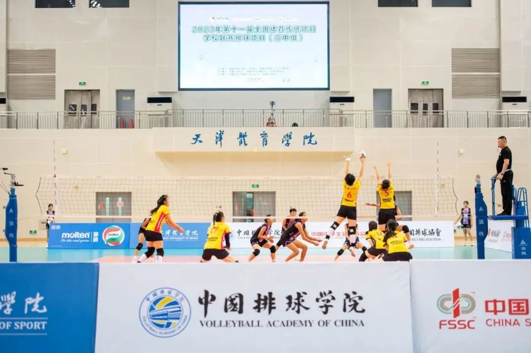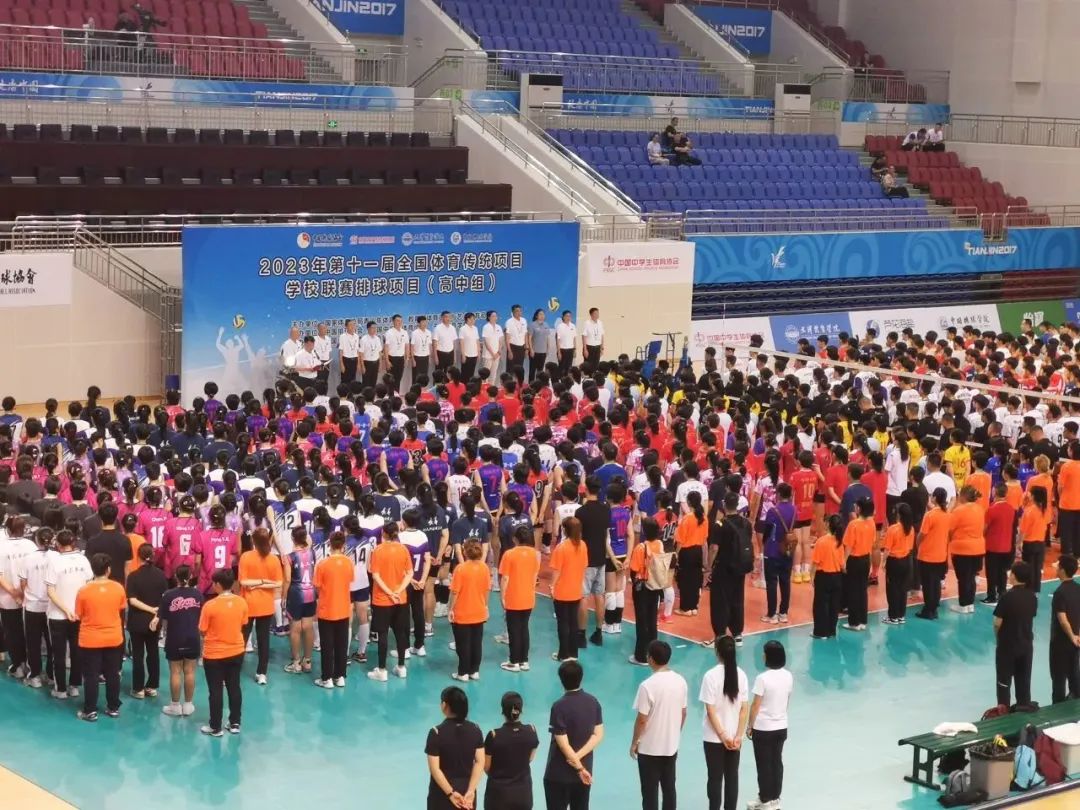 2023年8月3日,由國家體育總局青少司、教育部體衛藝司主辦,中國排球協會、中國中學生體育協會、天津體育學院承辦的2023年第十一屆全國體育傳統項目學校聯賽排球項目(高中組)比賽在天津體育學院開幕。天津體育學院黨委常委、副院長楊智,國家體育總局排球運動管理中心訓練及反興奮劑部副主任應可、中國中學生體育協會排球分會秘書長劉洋等領導出席開幕式。開幕式由本屆比賽管委會副主任、中國中學生體育協會排球分會副秘書長孫曉忠主持。來自17個省、自治區、直轄市的31支高中男子排球隊和31支高中女子排球隊參加了本次比賽。
