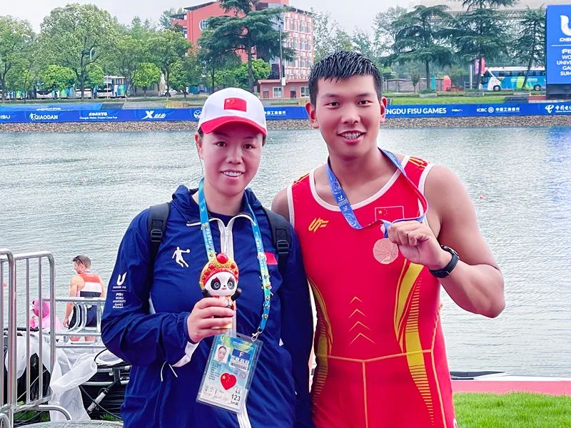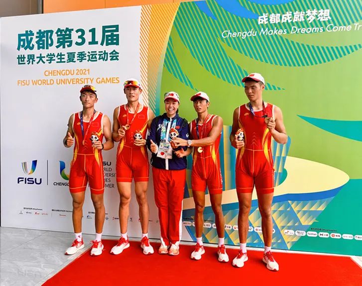 8月6日,成都第31屆世界大學生夏季運動會賽艇項目比賽圓滿結束。我校參賽教練員、運動員以能吃苦、肯擔當的勁頭全力投入備戰集訓和比賽中。最終我校學生、運動員單虹基與隊友密切協作,獲得男子八人單槳有舵手項目季軍,我校學生、運動員王丹、周熠獲得混合四人雙槳第六名。我校教師、教練員李晶晶作為男子四人單槳的主教練,嚴格訓練計劃,科學備戰,帶領4名運動員斬獲一枚金牌。