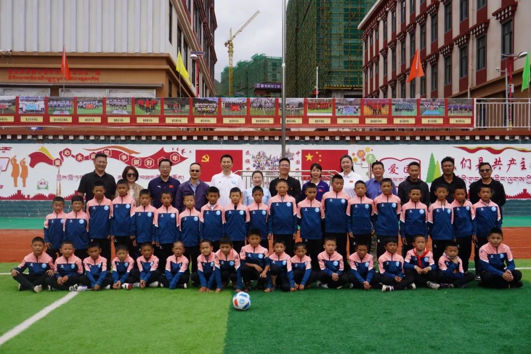 赴昌都市期間,我校與天津市足球協會共同舉行捐贈儀式,為昌都市卡諾區第一小學足球隊捐贈足球裝備。儀式上,張欣表示,足球的練習是一個長期過程,需要刻苦的訓練,勤奮的學習,才能真正地懂踢足球、會踢足球、踢好足球,并用“渴望、熱愛、執著”勉勵學校足球隊的孩子們,希望他們踢出西藏走向世界。捐贈儀式后我校一行與該校足球隊學生在海拔3300米的足球場進行了師生友誼賽。
