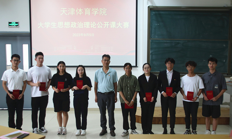 2023年9月5日,天津體育學院2023年大學生思想政治理論公開課決賽在教學樓舉行。馬克思主義學院全體教師和我校“青馬工程”學員班全體學員觀摩了比賽。