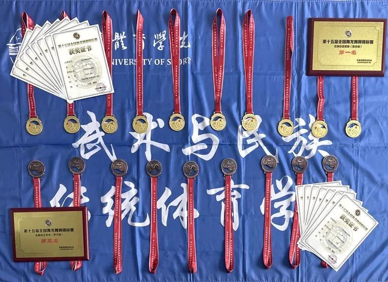 我校武術與民族傳統體育學院龍獅代表隊的20名大學生,在教練帶領下,利用暑假時間,戰酷暑、斗高溫,堅持訓練、斬獲佳績。舞獅項目獲得混合組北獅自選套路第一名和男子組北獅規定套路第三名,舞龍項目獲得男子組競速舞龍第四名和規定舞龍第六名。參賽的10名學生達到舞獅 “國家級運動健將”標準,10名學生達到舞龍“國家一級運動員”標準。