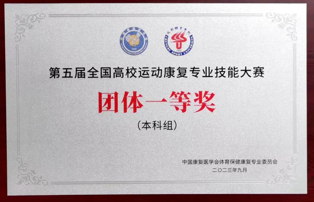 9月22-24日,由中國康復醫學會體育保健康復專業委員會主辦的第五屆全國高校運動康復專業技能大賽,在成都體育學院舉行。來自上海體育大學、天津體育學院、武漢體育學院、成都中醫藥大學等58所高校,共61支代表隊、183名參賽選手參加此次比賽。我校運動健康學院代表隊在本科組賽道獲得個人一等獎1項、二等獎3項、三等獎3項,榮獲團體一等獎!
