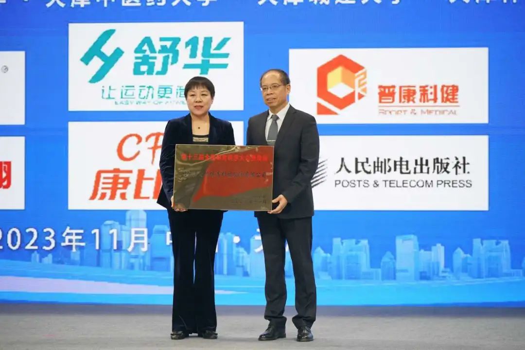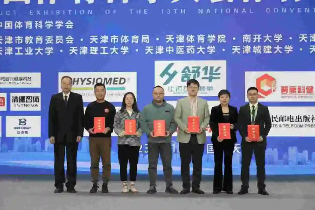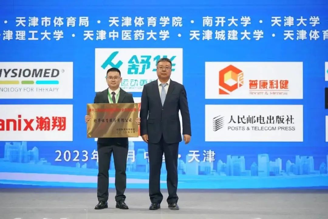 中國體育科學學會副理事長、秘書長曹景偉,副理事長張劍、陳佩杰、劉青,天津體育學院黨委副書記、校長張欣為舒華體育等40家贊助企業和參展企業授牌、頒發榮譽證書,感謝他們對本次體育科學大會的大力支持,并與舒華體育總裁特別助理侍勇、北京康比特體育科技股份有限公司總經理李奇庚、德國菲茲曼醫用電子公司北京代表處副總經理周寧、北京普康科健醫療設備有限公司康體事業部銷售總監時巖一起,為“第十三屆全國體育科學大會體育科技產品展示會”啟幕。