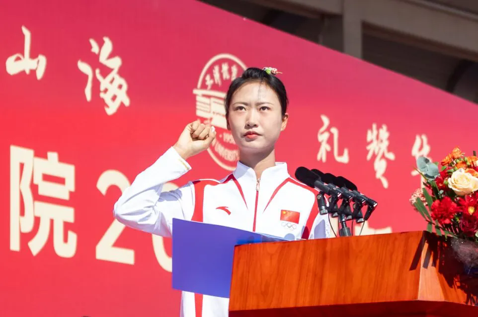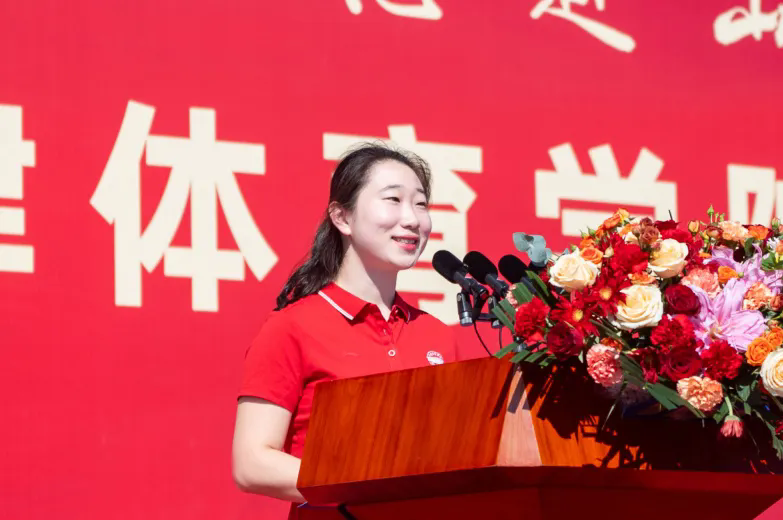 新生代表李紅分享了她作為中國女子曲棍球隊副隊長和隊友在巴黎奧運會征戰賽場的動人故事,鼓勵“新天體人”傳承體育精神、普及全民體育,肩負起體育強國的責任與擔當。