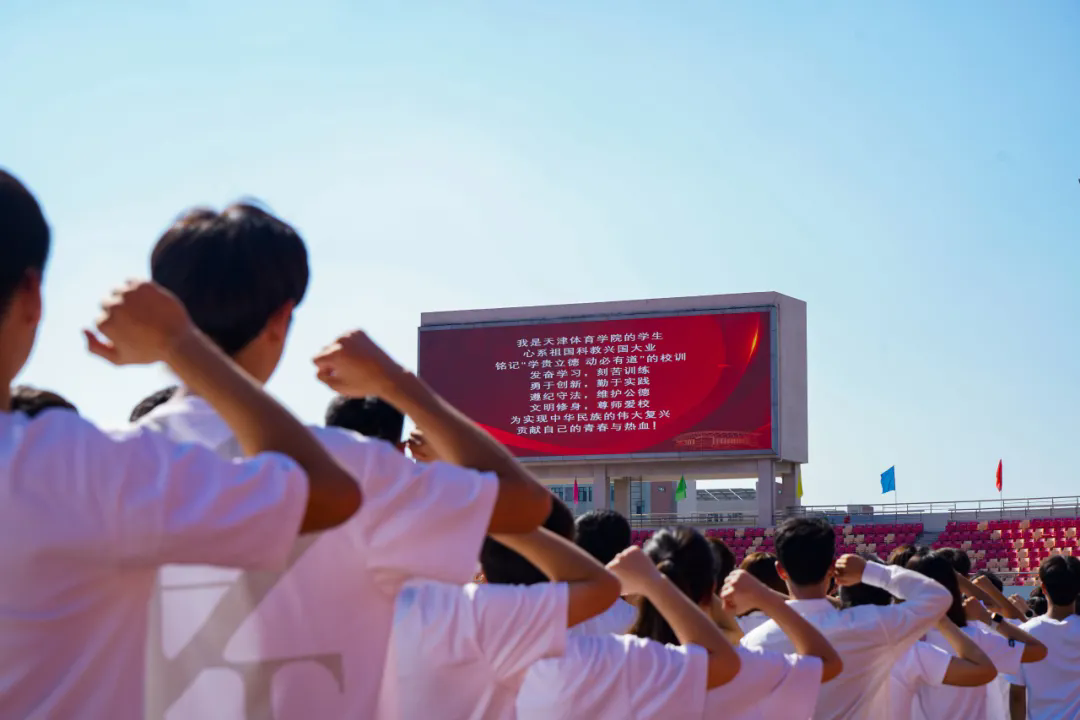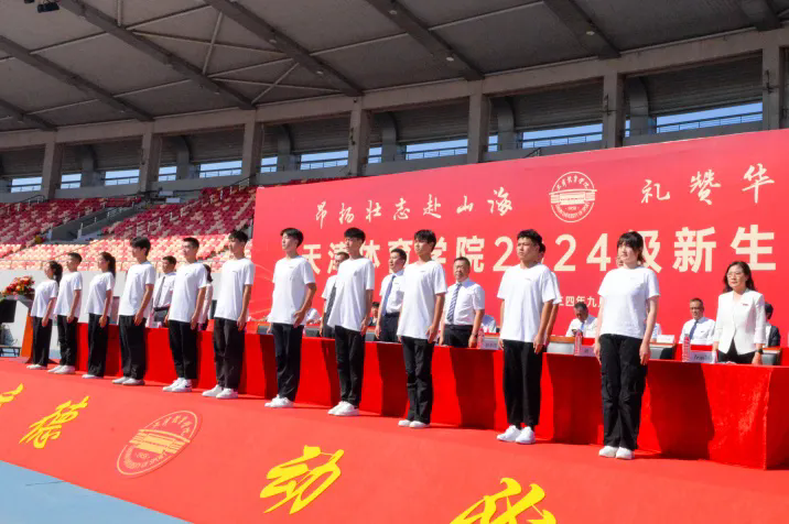 2024年9月6日,天津體育學院2024級新生開學典禮在田徑場舉行。黨委書記張立順,黨委副書記、院長張欣,黨委副書記宋愛軍,黨委常委、市紀委監委駐天津體育學院紀檢監察組組長張洺濤,黨委常委、副院長楊智,黨委常委、組織部部長羅秀偉,黨委常委、統戰部部長依惠琴出席典禮。相關職能部門和二級教學單位領導、全體新生輔導員、教師代表與全體新生參加。開學典禮由宋愛軍主持。