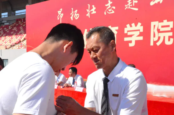 主席臺前排就座領導為新生代表佩戴校徽,賦予2024級新生“天體人”這一承載著時代使命與體育榮光的稱號。