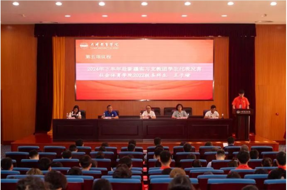 黨委學工部副部長李青宣讀《關于成立天津體育學院2024年下半年赴新疆實習支教團的決定》。