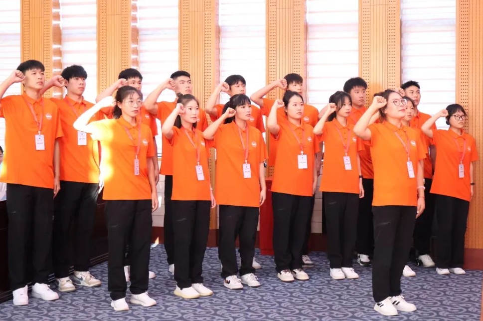 支教團全體師生宣誓,帶隊教師劉婷領誓。