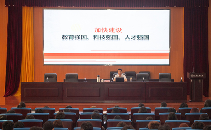 9月23日,黨委副書記、院長張欣為我校本科生代表講授形勢與政策第一課,宣講黨的二十屆三中全會精神,全面闡釋教育、科技、人才在全面建設社會主義現代化國家中的地位作用和相互關系,教育引導大學生深刻認識新時代加快建設教育強國、科技強國、人才強國的歷史使命。