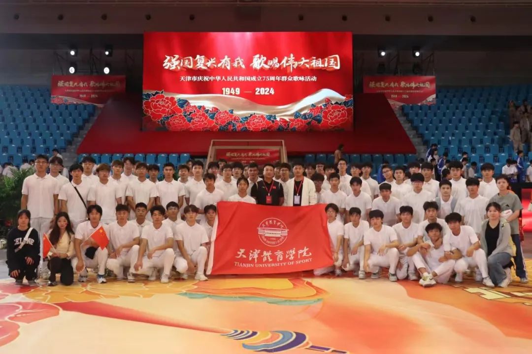 9月26日,“強國復興有我 歌唱偉大祖國”天津市慶祝中華人民共和國成立75周年群眾歌詠活動在市人民體育館舉行。作為全市規模最大、覆蓋面最廣的群眾性慶祝活動,現場設序幕“今天是你的生日 中國”、尾聲“歌唱祖國”和“大美中國”“盛世歡歌”“同心筑夢”“偉大征程”四個篇章。我校60余名大學生參演了《保衛黃河》《東方紅》《今天是你的生日 中國》3個節目,以飽滿的精神狀態圓滿完成此次演出任務,與活動現場來自全市各行各業的3500名代表一起,表達對新中國成立75周年的祝福。