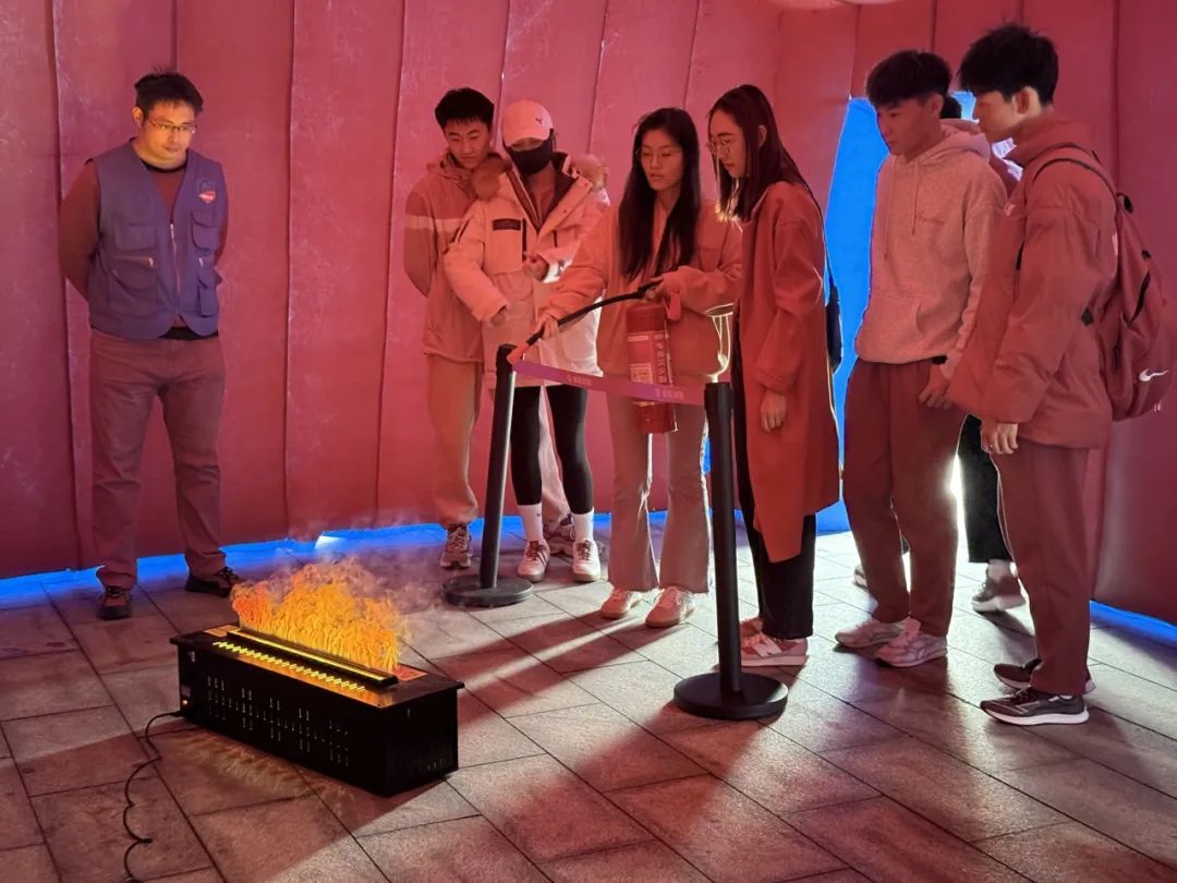 模擬消防艙體驗(yàn)環(huán)節(jié),艙內(nèi)電子模擬滅火器真實(shí)還原了滅火器的操作方法,幫助師生高效、快速掌握滅火器使用的方法和注意事項(xiàng)。疏散逃生艙最大程度模擬真實(shí)火場(chǎng)環(huán)境,參與人員沿應(yīng)急疏散指示牌快速疏散逃生,提升了應(yīng)急疏散逃生能力。