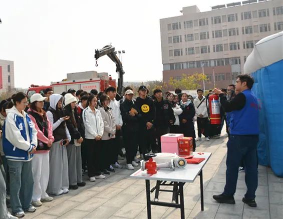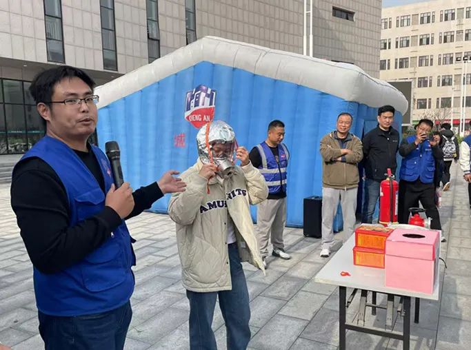 消防知識(shí)講座環(huán)節(jié),宣教員為師生員工講解了消防常識(shí)、火災(zāi)報(bào)警、疏散逃生等知識(shí),演示講解了滅火器、滅火毯、消防水帶、呼吸面罩等消防器材的使用方法,并邀請(qǐng)師生代表進(jìn)行了實(shí)操演練。