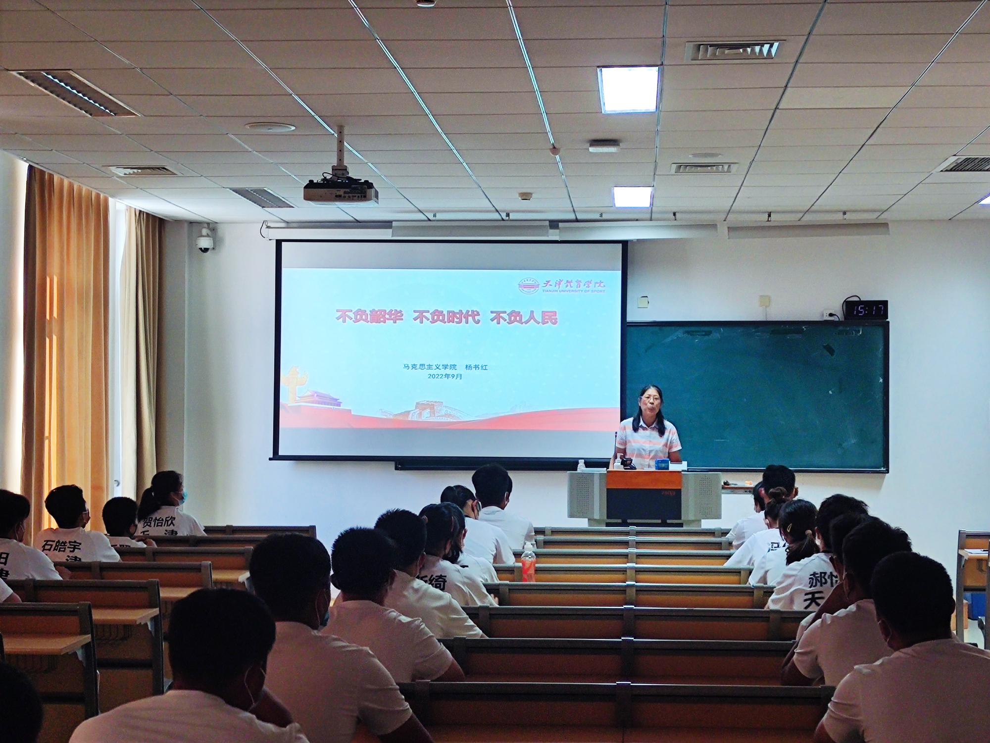 馬克思主義學(xué)院直屬黨支部書記楊書紅為橄欖球隊和羽毛球隊運動員,講授題為“不負(fù)韶華、不負(fù)時代、不負(fù)人民”的專題思政課。她向同學(xué)們講述了一代代青年人以國家富強(qiáng)、民族振興、人民幸福為己任,將青春熱血揮灑在祖國大地,以青春之我創(chuàng)造青春之中國的感人事跡,號召廣大青年運動員,為祖國的發(fā)展貢獻(xiàn)青春力量。