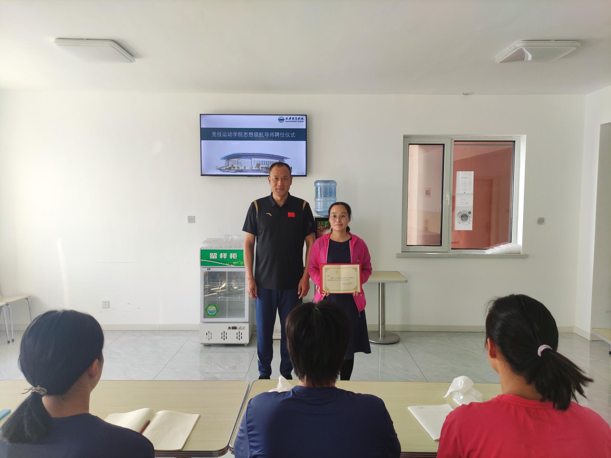 競技運動學(xué)院聘請馬克思主義學(xué)院教師馬振葉為思想領(lǐng)航導(dǎo)師,競技運動學(xué)院副院長聶軍良為馬振葉頒發(fā)聘書。馬振葉為賽艇隊運動員講授專題思政課。她從國之大者的角度講述了當(dāng)代體育人肩負(fù)的歷史使命,希望賽艇隊的青年運動員們以體育強(qiáng)國為己任,努力拼搏,以優(yōu)異的運動成績?yōu)榻】抵袊Ⅲw育強(qiáng)國建設(shè)貢獻(xiàn)力量。