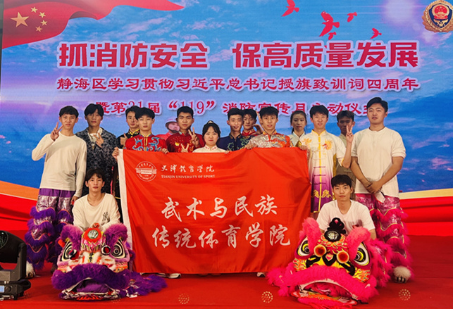 2022年11月9日,天津市靜海區(qū)舉行學習貫徹習近平總書記授旗致訓詞四周年暨第31屆“119”消防宣傳月啟動儀式。我校武術與民族傳統(tǒng)體育學院學生受邀參加,表演了精彩的武術和舞獅節(jié)目,展現(xiàn)了我校大學生拼搏進取的精神風貌和奮發(fā)向上的青春風采,贏得了在場領導和靜海區(qū)消防救援支隊的一致好評。