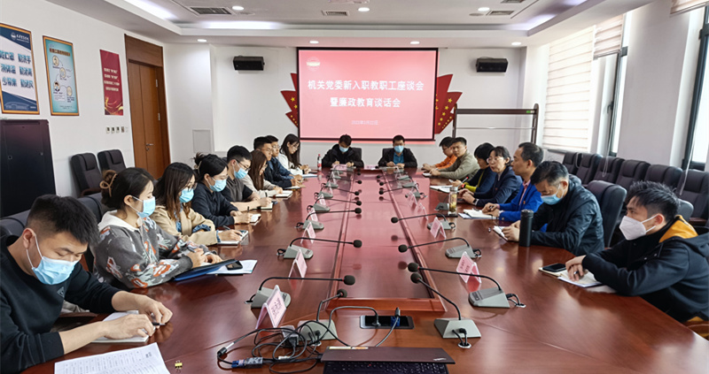 為進一步推進機關黨風廉政建設,機關黨委于3月22日召開新入職教職工座談會暨廉政教育談話會,機關黨委書記依惠琴、黨委委員、2021年以來機關新入職教職工參加了會議。會議由機關紀委書記劉崇磊主持。