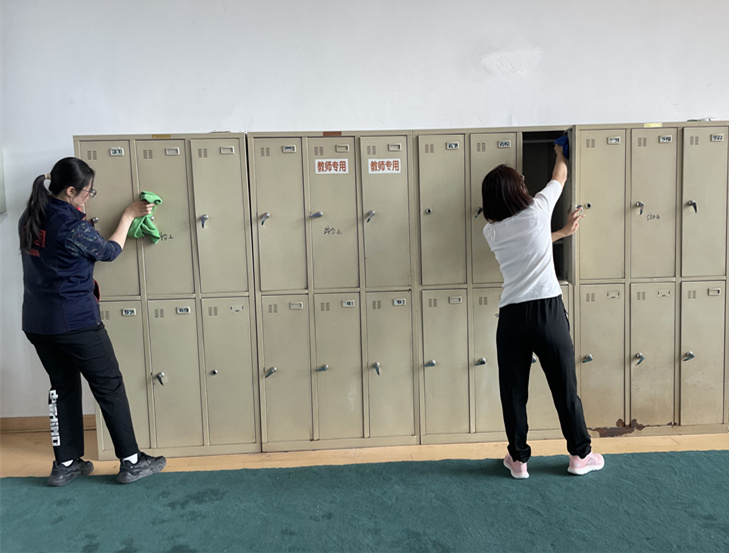 在學(xué)院黨總支書記丁保玉的帶領(lǐng)下,黨員教師們對(duì)考場(chǎng)進(jìn)行全面清潔,分組掃拖地面,擦拭儲(chǔ)物柜、長椅、欄桿等,對(duì)考生物品存放柜進(jìn)行了清潔和消毒。活動(dòng)中,大家服從安排、井然有序,對(duì)待每一項(xiàng)任務(wù)都認(rèn)真仔細(xì)、毫不懈怠。通過此次活動(dòng),學(xué)院黨員教師用實(shí)際行動(dòng)傳遞和踐行了雷鋒精神,為考生營造了良好的考試環(huán)境。