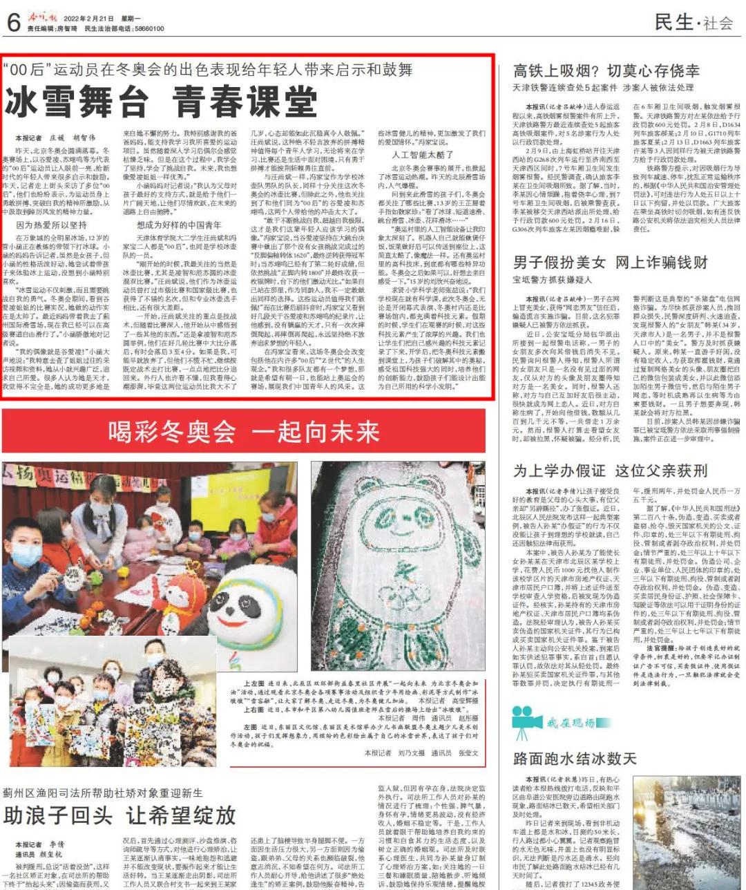 2022年2月21日,《今晚報》報道我校冰壺隊隊員以運動健兒為榜樣,從北京冬奧會中汲取前進力量。現全文轉載。