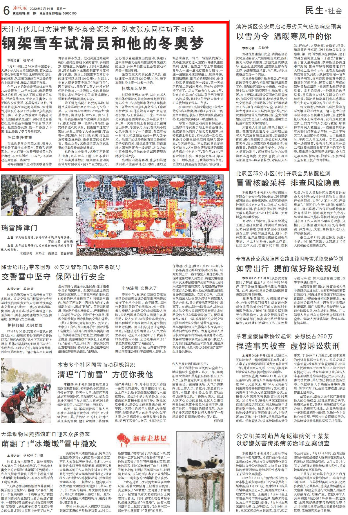 2022年2月14日,《今晚報(bào)》報(bào)道我校學(xué)子張京追逐冬奧夢想,助力中國鋼架雪車隊(duì)創(chuàng)造歷史?,F(xiàn)全文轉(zhuǎn)載。