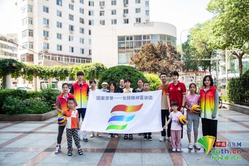 圖為國(guó)家榮譽(yù)——女排精神宣講團(tuán)與和平區(qū)香榭里社區(qū)居民合影留念。中國(guó)青年網(wǎng)通訊員 冷悅偉 攝