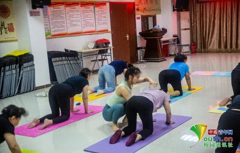 圖為宣講團(tuán)成員在普及瑜伽運(yùn)動(dòng)知識(shí)。中國(guó)青年網(wǎng)通訊員 冷悅偉 攝